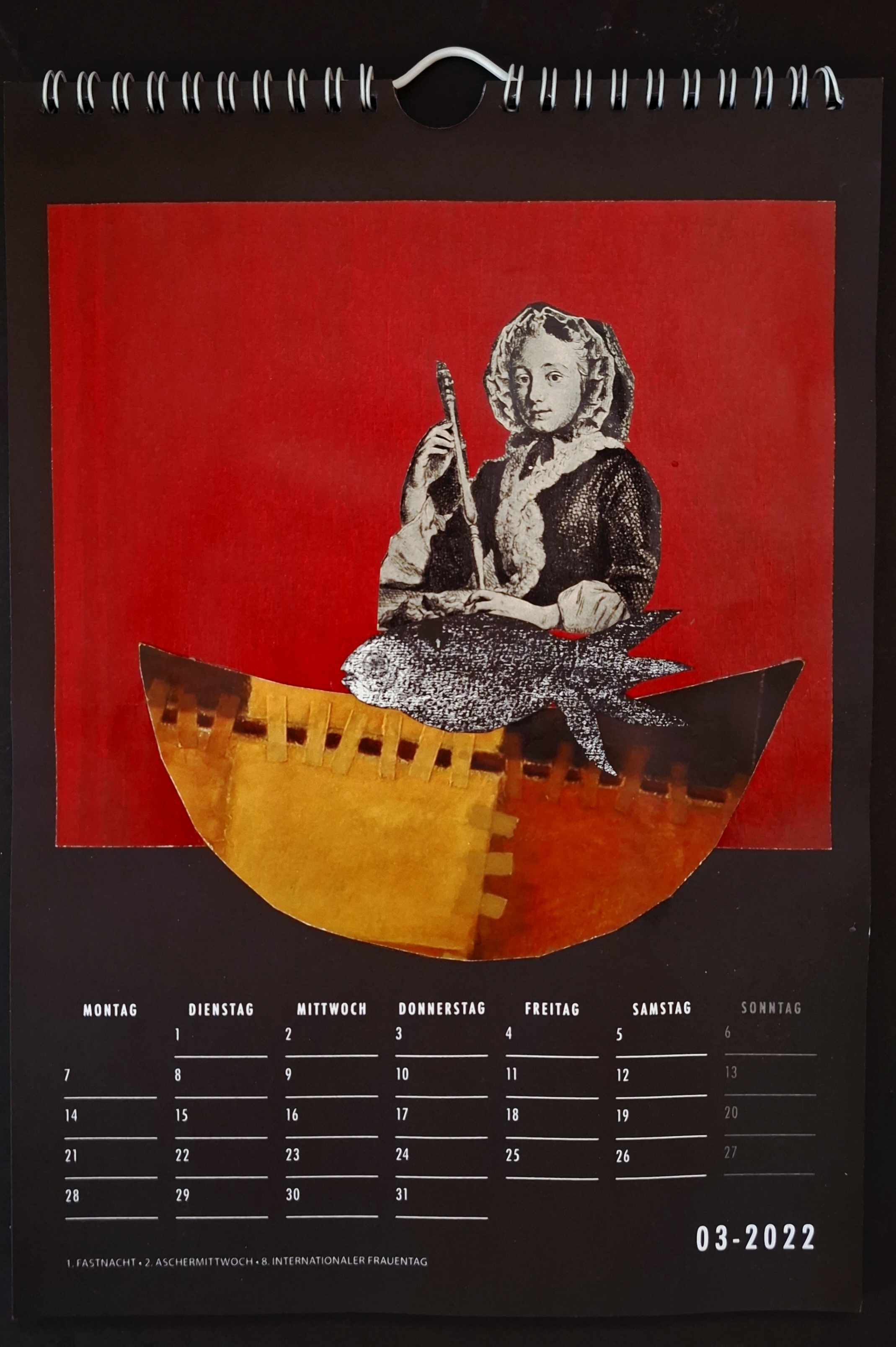 Der Titel der Ausstellung von Irene Wührl-Petry ist Programm, denn die Künstlerin gestaltet seit Jahren Kalenderblätter als Collagen. Je nachdem, was im Monat passiert ist, wird das eigene Erleben, das Weltgeschehen oder Anregungen in farbenfrohe Collagen umgesetzt.